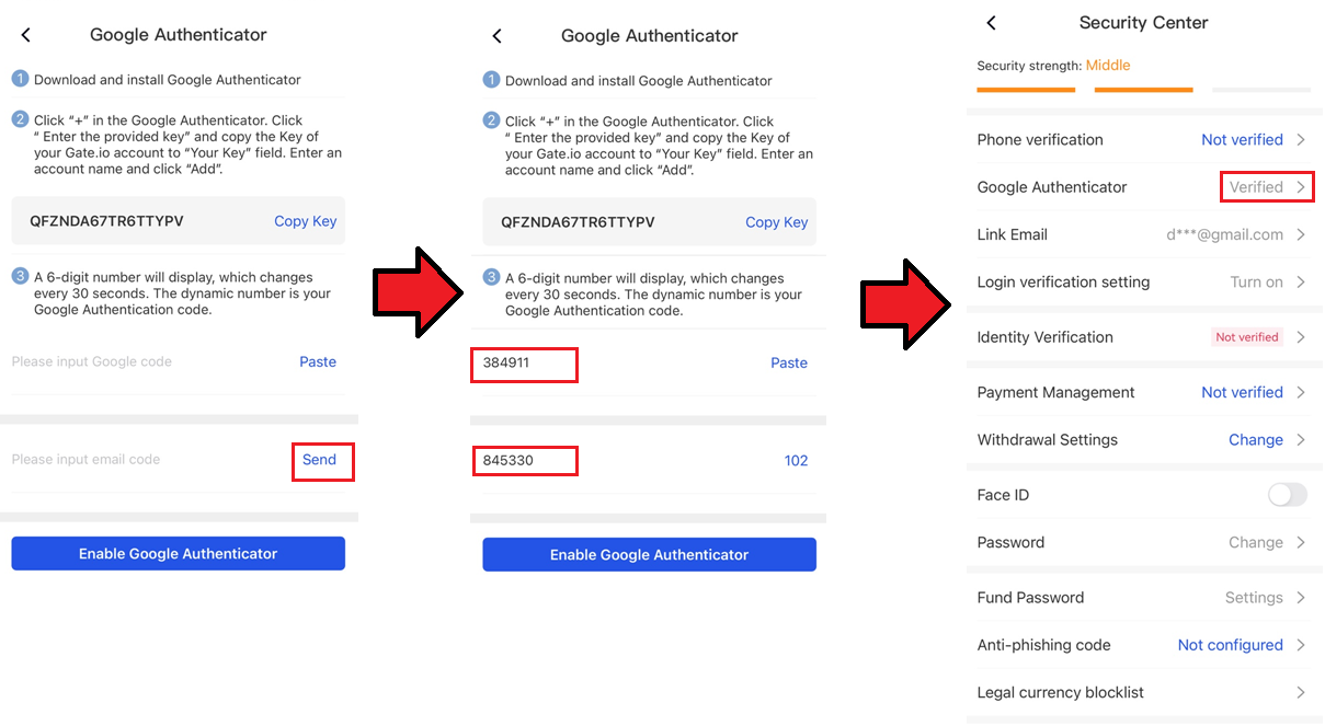 다시 게이트아이오 돌아오셔서 밑의 Send 버튼 누르셔서 이메일이나 핸드폰으로 인증코드 받으신다음