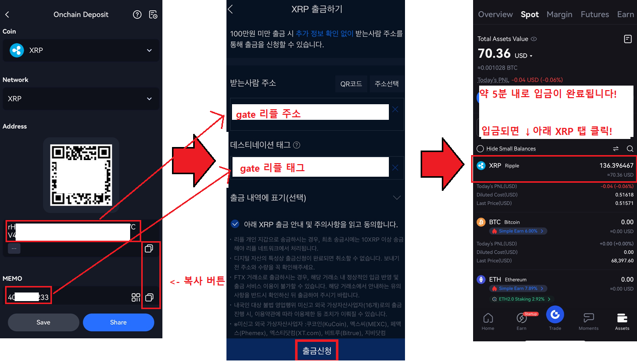 게이트아이오 리플 주소와 태그를 입력해 주시면 되는데요.