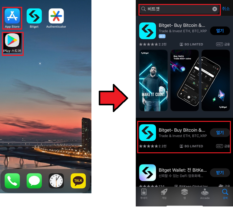 신원인증을 진행하기 위해 비트겟 어플을 설치해 주도록 합니다.